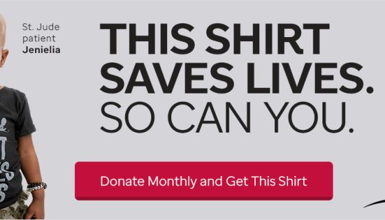 When you become a Partner In Hope, you will get the This Shirt Saves Lives t-shirt to wear as a reminder that you joined the lifesaving mission of St. Jude