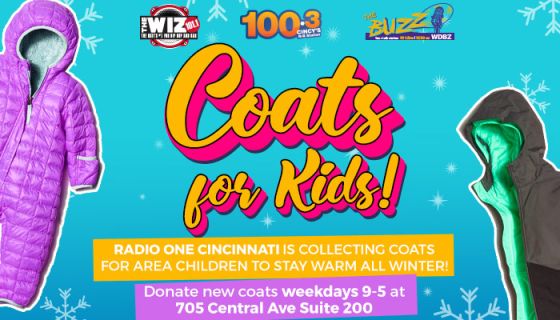Now through December 14th, we’ll be accepting donations for new coats for kids of all ages. Coats can be dropped off Monday through Friday between the hours of 9am-5pm at our Radio One Studios 705 Central Ave Suite 200. All coats collected will be donated to the Breaking Chains Youth Foundation who will deliver the coats to schools and organizations around our community. So help us help the kids! Donate today!