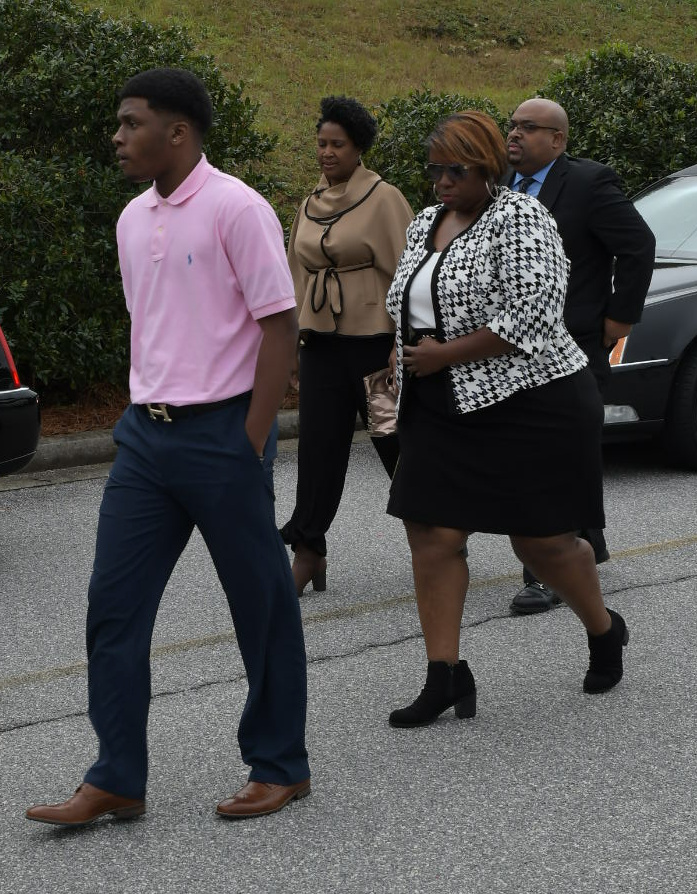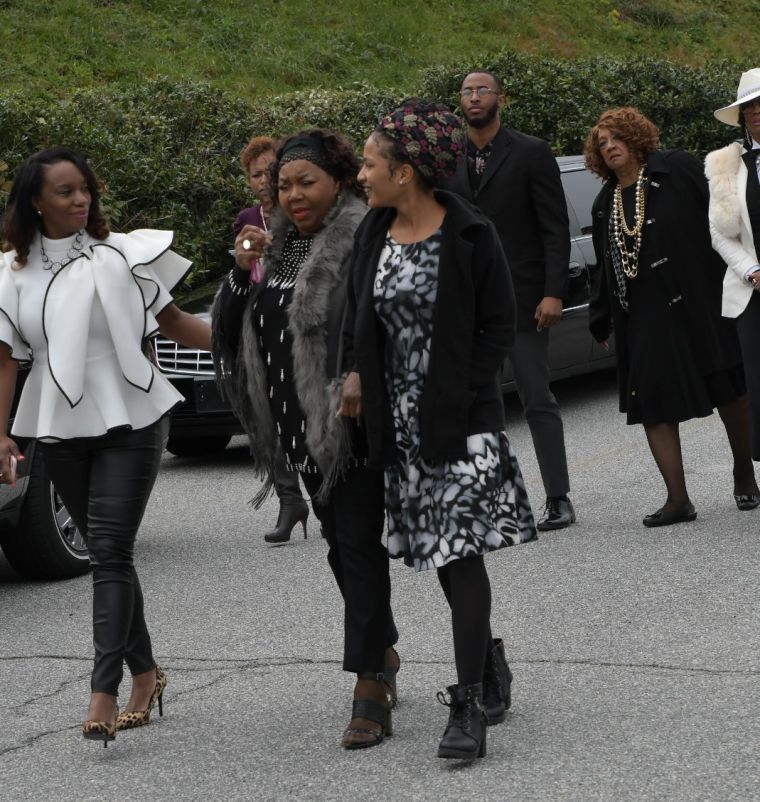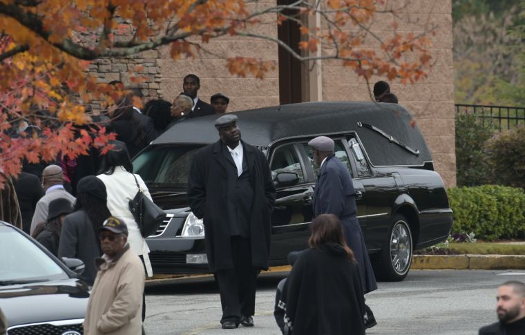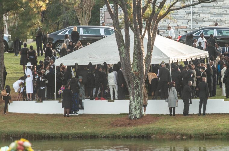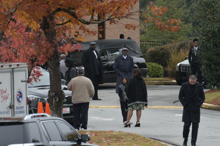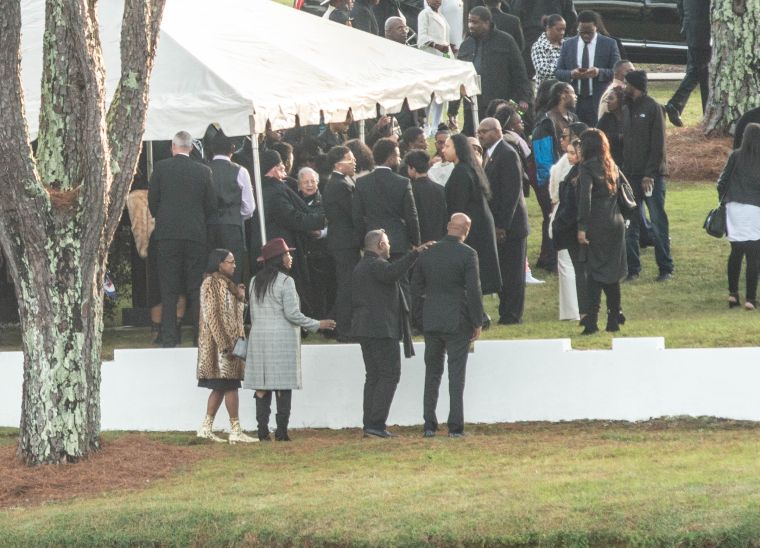 Mourners arrive at the funeral service for Kim Porter at the Cascade Hills Church in Columbus, Georgia.