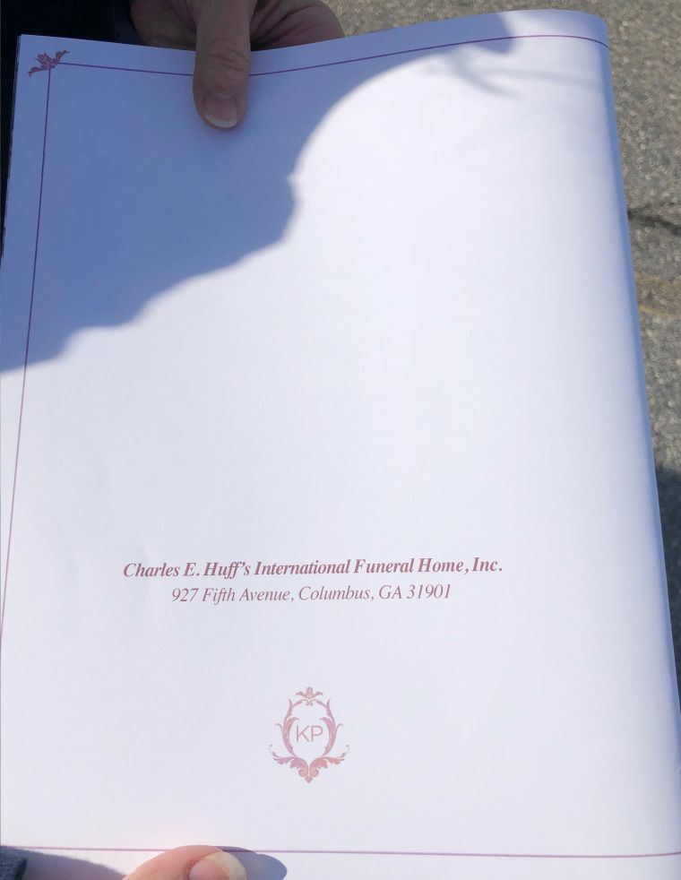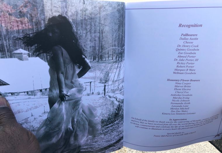 The order of service for the funeral service of Kim Porter at the Cascade Hills Church in Columbus, Georgia.