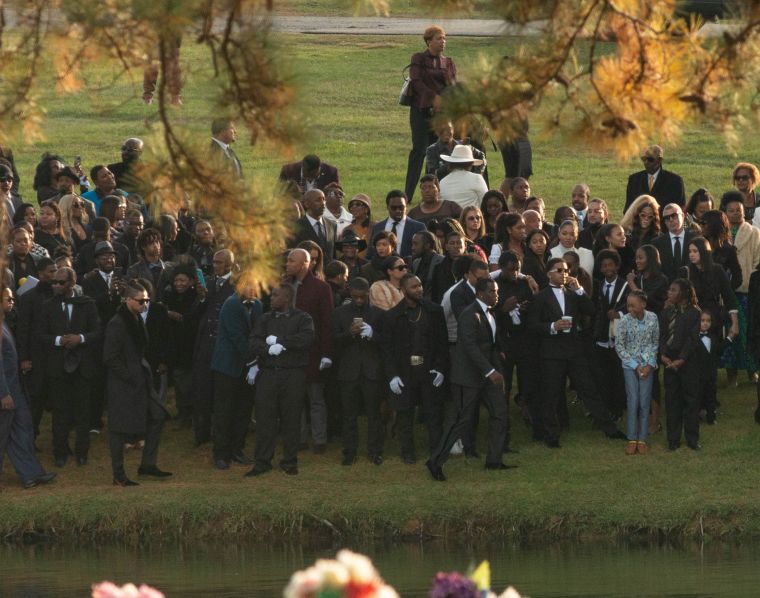 Mourners gather at Kim Porter’s funeral.
